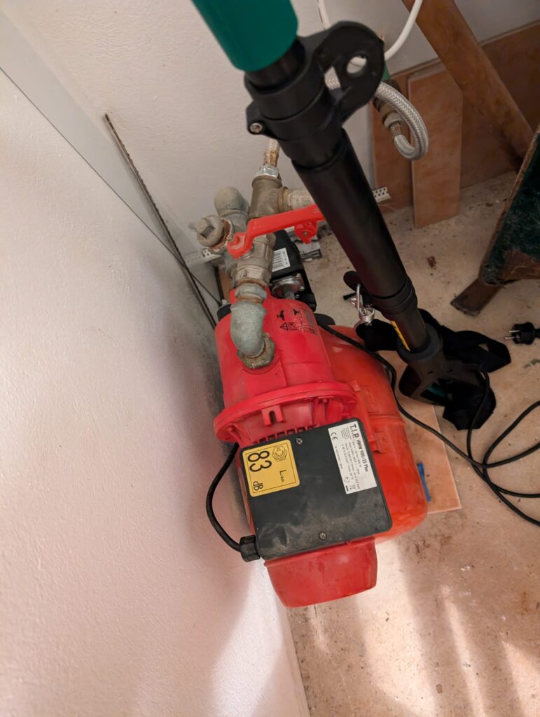 Die Wasserpumpe sorgt dafür, dass das Wasser aus der Zisterne in die Wasserleitungen gepumpt wird. Bitte die Wasserpumpe beim „Check-In“ einschalten und beim „Check-Out“ ausschalten. Ein- / Ausschalten Wasserpumpe Wasserpumpe von Oben