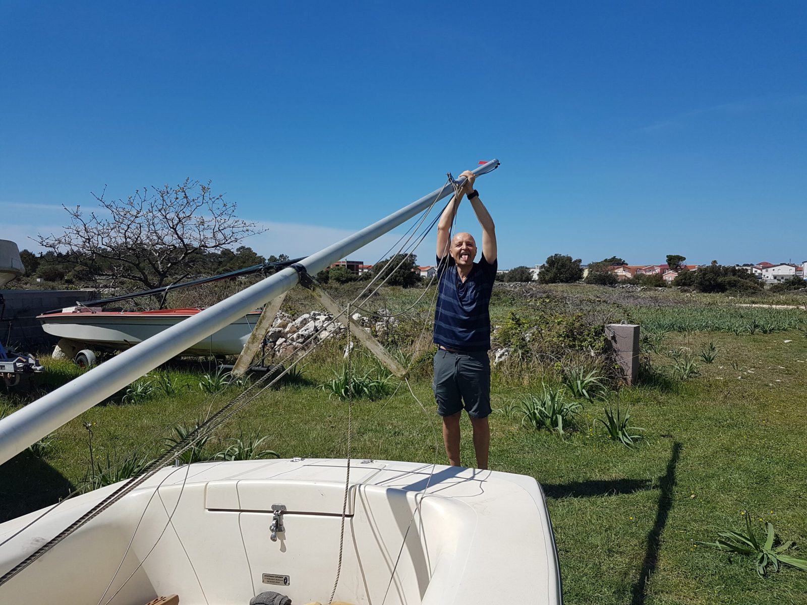 3. Den Mast erst von hinten und dann auf dem Boot stehend aufrichten.