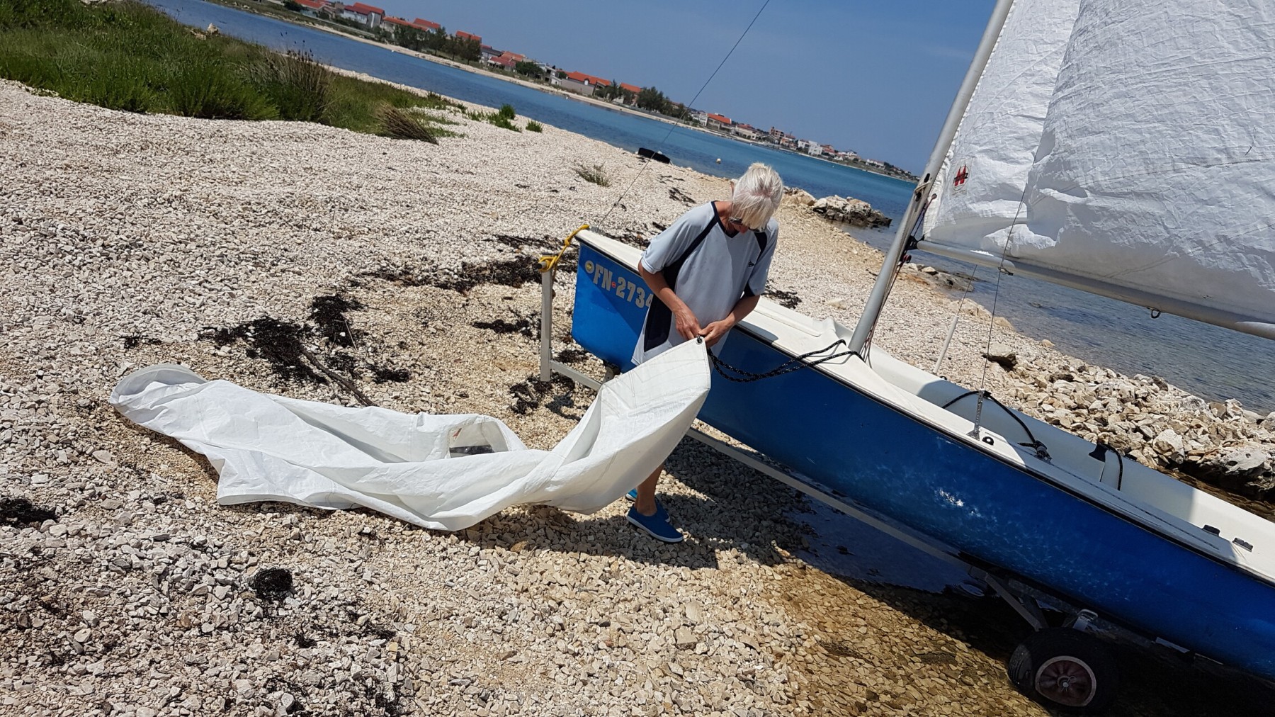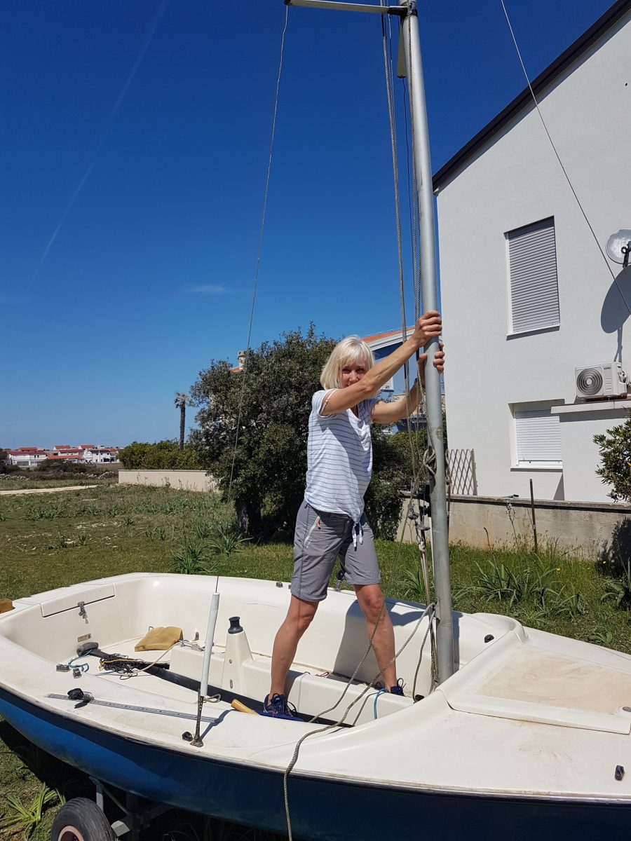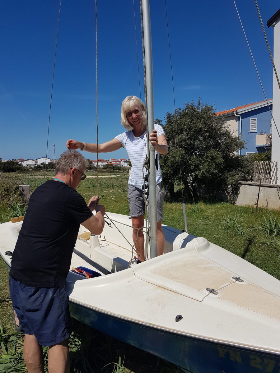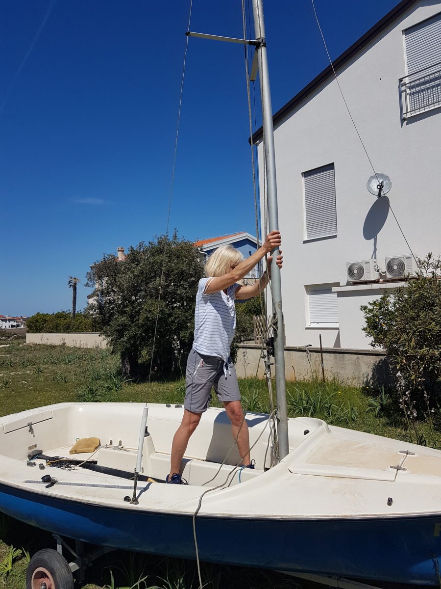 Für den Aufbau des Segelbootes sollte man mindestens zu zweit sein, um den Mast aufzurichten.